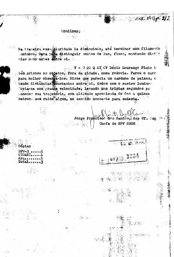 Na imagem, as duas páginas de um relato de observação de OVNI em Belo Horizonte, 27 de julho de 1972. Fundo Objeto Voador Não Identificado. BR_DFANBSB_ARX_140.